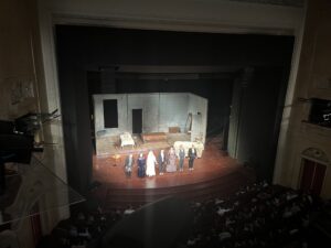 W czwartek, 19 marca uczniowie klas 4LO uczcili (przed)ostatni dzień zimy wizytą w Teatrze Polskim, gdzie obejrzeli „Tango” w reżyserii Wawrzyńca Kostrzewskiego. Jest to lektura obowiązkowa do matury na poziomie podstawowym. Choć spektakl nie schodzi z afisza już od trzech lat, widać, że (zwłaszcza w trzecim akcie) aktorzy czynią starania, by ich gra była świeża i aktualna. Uczniowie dostrzegli różne niuanse i docenili konsekwentny pomysł reżysera na to, by pokazać przede wszystkim farsowość świata, w którym tragedia przestała być możliwa (przez co parabola polityczna zeszła na dalszy plan). Poza tym zauważyli, że niektóre sceny zostały celowo odegrane wbrew intencjom Sławomira Mrożka, na przykład zamordowanie Artura przez Edka, które powinno być maksymalnie realistyczne (tu natomiast zostało zredukowane do prostego gestu). W każdym razie piękna pogoda skłoniła maturzystów do samodzielnych spacerów po Warszawie po spektaklu oraz do wizyt w barach mlecznych. Cóż – powiew wiosny oznacza zbliżającą się nieuchronnie maturę.