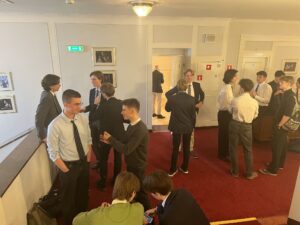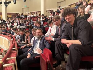 W czwartek, 19 marca uczniowie klas 4LO uczcili (przed)ostatni dzień zimy wizytą w Teatrze Polskim, gdzie obejrzeli „Tango” w reżyserii Wawrzyńca Kostrzewskiego. Jest to lektura obowiązkowa do matury na poziomie podstawowym. Choć spektakl nie schodzi z afisza już od trzech lat, widać, że (zwłaszcza w trzecim akcie) aktorzy czynią starania, by ich gra była świeża i aktualna. Uczniowie dostrzegli różne niuanse i docenili konsekwentny pomysł reżysera na to, by pokazać przede wszystkim farsowość świata, w którym tragedia przestała być możliwa (przez co parabola polityczna zeszła na dalszy plan). Poza tym zauważyli, że niektóre sceny zostały celowo odegrane wbrew intencjom Sławomira Mrożka, na przykład zamordowanie Artura przez Edka, które powinno być maksymalnie realistyczne (tu natomiast zostało zredukowane do prostego gestu). W każdym razie piękna pogoda skłoniła maturzystów do samodzielnych spacerów po Warszawie po spektaklu oraz do wizyt w barach mlecznych. Cóż – powiew wiosny oznacza zbliżającą się nieuchronnie maturę.