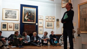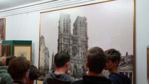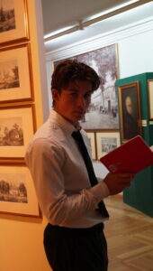 Na wstępie kustosz wprowadził nas w tematykę romantyzmu, opowiadając o preromantyzmie angielskim i niemieckim. Następnie zarysował nastrój utworów z epoki romantyzmu, opowiadając o roli natury w ówczesnej sztuce. Nasza wycieczka miała jednak głównie na celu przybliżenie postaci polskiego wieszcza narodowego, Adama Mickiewicza, dlatego później skupiliśmy się na nim. Dzięki przestudiowaniu historii jego życia, opowiedzianej w interesujący sposób (praca, podróże, małżeństwo) oraz dzięki obejrzeniu realnych pamiątek po Adamie Mickiewiczu, takich jak pierwsze wydania jego dzieł, oryginalne pióro, rękopisy utworów (min. „Ody do młodości”) mogliśmy dokładnie poznać zarówno jego życie prywatne, jak i intensywną działalność publiczną i artystyczną.