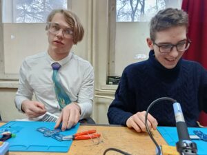 Czy z pomocą Sławosza Uznańskiego-Wiśniewskiego można stworzyć nadajnik i odbiornik do komunikacji alfabetem Morse’a? I to w kształcie stacji kosmicznej? To, co innym wydaje się fantazją, w ŻAGLACH zdarza się na co dzień! Uczniowie z klasy 2LOb w ramach lekcji fizyki lutowali różnorodne elementy elektroniczne do płytki przygotowanej przez Polską Agencję Kosmiczną POLSA.